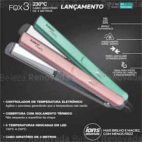 Garanta já a sua Chapa Fox Íon 3 e conquiste cabelos deslumbrantes todos os dias!