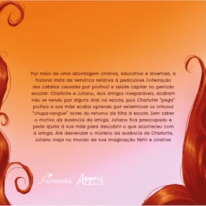 Por meio de uma abordagem criativa, educativa e divertida, a história trata da temática relativa à pediculose (infestação dos cabelos causada por piolhos) e saúde capilar no período escolar. Charlotte e Juliano, dois amigos inseparáveis, acabam não se vendo por alguns dias na escola, pois Charlotte “pega” piolhos e sua mãe acaba optando por exterminar os intrusos “chupa-sangue” antes do retorno da ?lha à escola. Sem saber o motivo da ausência da amiga, Juliano ?ca preocupado e pede ajuda à sua mãe para descobrir o que aconteceu com a amiga. Até desvendar o mistério da ausência de Charlotte, Juliano viaja no mundo da sua imaginação fértil e criativa.