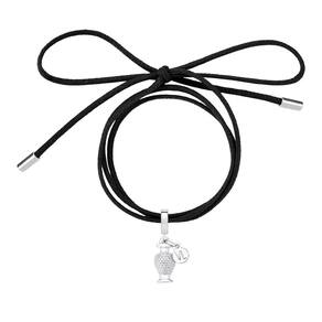 O Cordão de algodão preto encerado possui ponteiras revestidas em Prata. A união desses acessórios cria uma peça coringa que permite ser usada como pulseira ou colar.