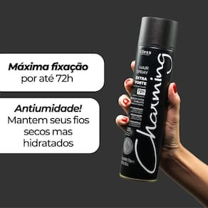 O Hair Spray Charming Extra forte é indispensável na bancada dos profissionais de cabelo. Oferece jato seco, fixação prolongada e duradoura. Ideal para texturização, montagem e finalização para penteados mais elaborados em diferentes tipos de cabelos.