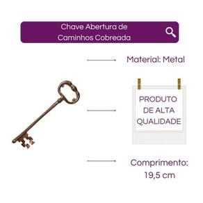 Chave Abertura de Caminhos 19,5cm em Metal - Escolha a Cor Cor: Cobreada Esta Chave serve para abrir caminhos, atrair energias positivas para sua vida e também trazer mais proteção espiritual para sua vida e contra invejas. Tem o poder de transmutar energias. Descrição Conteúdo da embalagem: uma chave. Dimensões aproximadas do produto: Largura total: 5,50 cm Comprimento total: 19,50 cm Peso aproximado: 100 g Material: Metal Tire todas as suas Dúvidas antes de concluir a compra. Iremos responder o mais breve possível. Embalagem de Envio: Caixa de papelão ondulado, plástico bolha, conforme necessidade do produto. Ótima resistência e durabilidade. Respostas das dúvidas mais frequentes na ordem: R1: Já realizamos milhares de entregas em todo o Brasil, somos especialistas no que fazemos. R2: Assim que seu pedido for despachado, esta plataforma envia para você o código de rastreamento. R3: Enviamos o produto 100% inspecionado e conferido em nosso checkout e são embalados em embalagem de papelão e plástico bolha. R4: O tempo de entrega irá depender totalmente do seu CEP, todos os nossos produtos saem de Capital. R5: Iremos despachar o seu produto o mais rápido possível, assim que for confirmado pela plataforma, enviamos em até 24h. R6: Nós queremos a sua satisfação, qualquer problema iremos te auxiliar em nossos canais de comunicações Marca: Não Informado Ean: 7894135815379