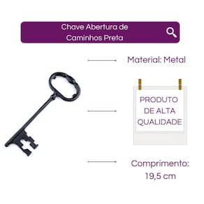 Chave Abertura de Caminhos Preta 19,50 cm em Metal Esta Chave serve para abrir caminhos, atrair energias positivas para sua vida e também trazer mais proteção espiritual para sua vida e contra invejas. Tem o poder de transmutar energias. Descrição Conteúdo da embalagem: uma chave. Dimensões aproximadas do produto: Largura total: 5,50 cm Comprimento total: 19,50 cm Peso aproximado: 100 g Material: Metal Tire todas as suas Dúvidas antes de concluir a compra. Iremos responder o mais breve possível. Embalagem de Envio: Caixa de papelão ondulado, plástico bolha, conforme necessidade do produto. Ótima resistência e durabilidade. Respostas das dúvidas mais frequentes na ordem: R1: Já realizamos milhares de entregas em todo o Brasil, somos especialistas no que fazemos. R2: Assim que seu pedido for despachado, esta plataforma envia para você o código de rastreamento. R3: Enviamos o produto 100% inspecionado e conferido em nosso checkout e são embalados em embalagem de papelão e plástico bolha. R4: O tempo de entrega irá depender totalmente do seu CEP, todos os nossos produtos saem de Capital. R5: Iremos despachar o seu produto o mais rápido possível, assim que for confirmado pela plataforma, enviamos em até 24h. R6: Nós queremos a sua satisfação, qualquer problema iremos te auxiliar em nossos canais de comunicações Marca: Não Informado Ean: 7890003948750
