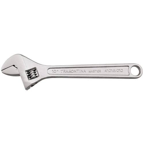 Para inserir maior facilidade durante o conserto de máquinas, objetos ou até mesmo carros, utilize a Chave Ajustável para Porcas 10 polegadas Tramontina com Corpo Forjado em Aço Carbono Cromado em seus projetos. Esse produto além de contar com sua fabricação em material de alta qualidade, ele também conta abertura ajustável que vai lhe permitir apertar ou afrouxar porcas e parafusos de diferentes tamanhos com a mesma ferramenta! Tramontina a escolha certa para todos os momentos! Orientações Acabamento cromado.O aço especial empregado na fabricação do produto, aliado à têmpera garantem maior resistência.A escala em milímetros, marcada a laser, no mordente do produto facilita o ajuste do tamanho do parafuso.Ferramenta muito versátil.As ferramentas são produzidas e testadas conforme normas específicas. Observações Use óculos, luvas e outros equipamentos de proteção de acordo com a tarefa a ser executada. Não golpeie as chaves, a não ser que sejam projetadas para este fim. Sempre utilize uma chave de bitola correta para cada parafuso ou porca para que não haja folga, pois isso danifica a chave e o parafuso. Mantenha a chave limpa para um melhor agarre, pois usá-la suja com graxa ou óleo pode causar acidentes. Não use tubos ou extensões para obter mais torque. Não altere a forma original das chaves. Armazene em local limpo e seco. Características Gerais EAN13 7891114062717 DUN14 17891114062714 NCM 8204.12.00 Peso Líquido 0,4500 kg. Peso Bruto 0,4500 kg. Metragem 0,000978 m³. Dimensões Embalagem (Compr. X Larg. X Alt.) 340x 115x 25 mm. Dimensões Produto (Compr. X Larg. X Alt.) 255x 67x 16 mm. Dimensão Extra A 67,0 mm. Dimensão Extra B 255,0 mm. Dimensão Extra C 28,0 mm. Dimensão Extra D 8,0 mm. Dimensão Extra E 16,0 mm.