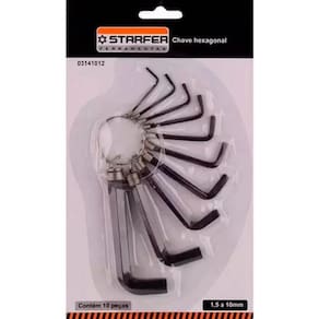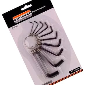 DESCRIÇÃO Utilizado para fixar ou soltar parafusos com sextavados internos. A Chave Allen Hexagonal Starfer 1,5 A 10mm Jogo com 10 Peças tem o formato em L que possibilita o efeito de alavanca durante o aperto ou desaperto de parafusos. Marca: Starfer DETALHES Fabricado em aço cromo vanádio, proporcionando resistência e durabilidade em aplicações mais severas. Acabamento fosfatizada/escurecida Possui argola para ser utilizado como chaveiro ESPECIFICAÇÕES Jogo de chaves allen possui 10 peças: 1,5mm 2mm 2,5mm 3mm 3,5mm 4mm 5mm 6mm 8mm 10mm CARACTERÍSTICAS Perfil do corpo em L, o que possibilita o efeito de alavanca durante o aperto ou desaperto de parafusos. Projetado para trabalhar com peças que tem cavidade interna hexagonalAS IMAGENS SÃO MERAMENTE ILUSTRATIVAS Ean: 7891638013264