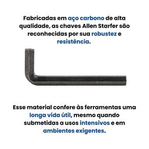 Chave allen hexagonal starfer tamanho: 5mm Material: aço cromo vanádio Acabamento: fosfatizado/escurecido Uso: profissional e doméstico Formato: l Marca: starfer Ncm: 8204.11.00 A chave allen hexagonal da starfer é uma ferramenta robusta e versátil projetada para fixar ou soltar parafusos com sextavados internos, proporcionando eficiência e facilidade durante o processo. Seu design inovador em formato de l oferece um eficiente efeito de alavanca, facilitando tanto o aperto quanto o desaperto de parafusos, tornando-a uma escolha ideal para diversas aplicações. Fabricada com material de alta qualidade, a chave é confeccionada em aço cromo vanádio, conferindo-lhe resistência e durabilidade excepcionais mesmo em condições de uso mais severas. O acabamento fosfatizado/escurecido não apenas contribui para a estética da ferramenta, mas também proporciona uma camada adicional de proteção contra corrosão, prolongando ainda mais sua vida útil. A presença de uma argola na extremidade da chave não apenas facilita o armazenamento, mas também oferece a opção de utilizá-la como chaveiro, proporcionando praticidade e organização ao usuário. Além disso, o perfil do corpo em l, aliado ao seu projeto específico, garante o eficaz efeito de alavanca, tornando o manuseio dos parafusos mais eficiente e menos cansativo. Essa chave allen hexagonal da starfer é especialmente projetada para trabalhar com peças que possuem cavidade interna hexagonal, garantindo um ajuste preciso e seguro. Ao escolher a marca starfer, o usuário pode confiar na qualidade máxima do produto, respaldada pela reputação consolidada da marca no mercado. Seja para ou doméstico, essa chave é uma ferramenta confiável que atende às exigências mais rigorosas, oferecendo desempenho excepcional em todas as aplicações. As imagens são meramente ilustrativas