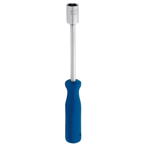Haste em aço Gedore-Vanadium e cabo em polímero. Haste com acabamento niquelado e cromado. Chave com perfil de encaixe para parafuso com sextavado externo e cabo ergonômico. Indica para eletro-eletrônica e mecânica leve, principalmente em locais de difícil acesso.