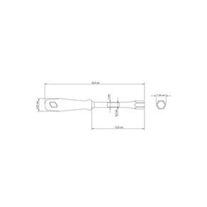 Haste em aço especial temperada. Acabamento cromado. Cabo injetado. As hastes das chaves de fenda são testadas em máquina de ensaio específica, para verificar o perfeito balanço entre resistência mecânica e dureza. Os dimensionais das pontas são verificados com gabaritos-padrão calibrados e certificados. Apertar ou afrouxar porcas e parafusos. Adequada para lugares de difícil acesso. As ferramentas são produzidas e testadas conforme normas específicas.