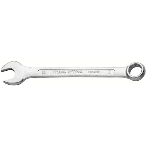 Para trabalhos gerais em casa, a Chave Combinada 10 mm Tramontina Basic com Corpo em Aço Especial Cromado será uma aliada perfeita. Produzida em aço especial com acabamento cromado, possui duas configurações de chaves: de um lado chave fixa e do outro chave estrela, sendo ideal para apertar e afrouxar parafusos ou porcas. Uma ferramenta versátil que pode ser usada tanto em perfis quadrados quanto em sextavados, ela é indispensável para sua caixa de ferramentas! Orientações Corpo forjado em aço especial e temperado.Acabamento cromado.Abertura das bocas calibradas.Pescoço curto.O teste de dureza é realizado em vários pontos para assegurar a resistência ao desgaste da chave durante o uso ininterrupto.As aberturas das bocas das chaves de aperto são verificadas com gabaritos calibrados, o que garante seu perfeito acoplamento nos parafusos.Alguns tipos de chaves de aperto são fornecidos em bitolas métricas e em polegadas, para o uso nos diversos fixadores disponíveis.As ferramentas são produzidas e testadas conforme normas específicas. Características Gerais EAN13 7891114063547 DUN14 17891114063544 NCM 8204.11.00 Peso Líquido 0,0500 kg. Peso Bruto 0,0500 kg. Metragem 0,000220 m³. Dimensões Embalagem (Compr. X Larg. X Alt.) 200x 55x 20 mm. Dimensões Produto (Compr. X Larg. X Alt.) 140x 24x 8 mm. Dimensão Extra A 5,0 mm. Dimensão Extra B 140,0 mm. Dimensão Extra C 8,2 mm. Dimensão Extra D 24,0 mm. Observações Use óculos, luvas e outros equipamentos de proteção de acordo com a tarefa a ser executada. Não golpeie as chaves, a não ser que sejam projetadas para este fim. Sempre utilize uma chave de bitola correta para cada parafuso ou porca para que não haja folga, pois isso danifica a chave e o parafuso. Mantenha a chave limpa para um melhor agarre, pois usá-la suja com graxa ou óleo pode causar acidentes. Não use tubos ou extensões para obter mais torque. Não altere a forma original das chaves. Armazene em local limpo e seco.