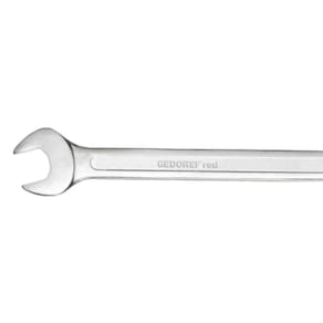 A Chave Combinada possui posição da boca em 15, fabricado em aço cromo-vanádio GEDORE red, acabamento niquelado cromado. Posição da cabeça (lado estrela) 15.