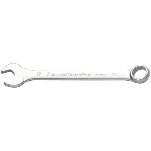 Ideal para apertar e afrouxar parafusos ou porcas com perfil quadrado ou sextavado, as chaves da Tramontina PRO são fabricadas com matéria prima que garante alta resistência e durabilidade. Para perfeito funcionamento é importante usar a chave de tamanho compatível à cabeça da porca ou parafuso. Com as chaves da Tramontina PRO, quem passa aperto é o parafuso. Orientações Cabeça usinada.Pescoço curto.Abertura da boca calibrada.Acabamento cromado.DIN 3113.ISO 7738.As chaves de aperto são produzidas em aço ligado com cromo vanádio (Cr-V), e apos submetidas a testes rigorosos de torque para atender a norma DIN 1711-1.O teste de dureza é realizado em vários pontos para assegurar a resistência ao desgaste da chave durante o uso ininterrupto.Afrouxar e apertar parafusos e porcas sextavadas e quadradas.As ferramentas são produzidas e testadas conforme normas específicas. Observações Use óculos, luvas e outros equipamentos de proteção individual (EPIs) de acordo com a tarefa a ser executada. Não golpeie as chaves, a não ser que sejam projetadas para este fim. Sempre utilize uma chave de bitola correta para cada parafuso ou porca para que não haja folga, pois isso danifica a chave e o parafuso. Mantenha a chave limpa para um melhor agarre, pois usá-la suja com graxa ou óleo pode causar acidentes. Não use tubos ou extensões para obter mais torque. Não altere a forma original das chaves. Respeite o torque estabelecido por norma para cada tamanho de chaves. Use a chave perpendicular ao eixo do parafuso e/ou porca. Isto aumenta a vida útil da ferramenta e torna a operação mais segura. Armazene em local limpo e seco. Características Gerais EAN13 7891114025323 DUN14 17891114025320 NCM 8204.11.00 Peso Líquido 0,1360 kg. Peso Bruto 0,1700 kg. Metragem 0,000080 m³. Dimensões Embalagem (Compr. X Larg. X Alt.) 270x 55x 15 mm. Dimensões Produto (Compr. X Larg. X Alt.) 207x 11x 7 mm. Dimensão Extra A 7,3 mm. Dimensão Extra B 207,0 mm. Dimensão Extra C 11,5 mm. Tamanho 17 mm