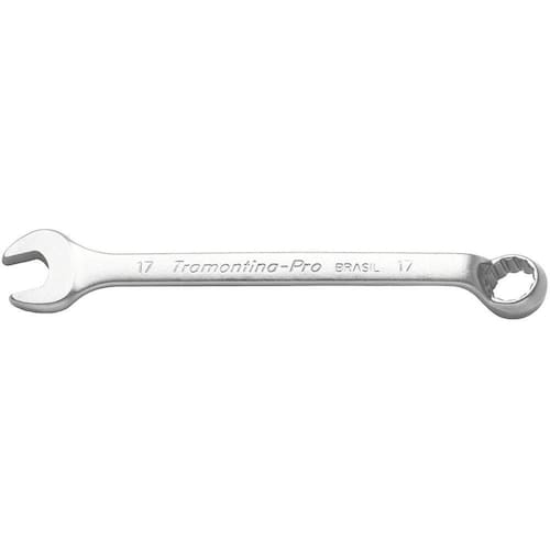 Chave Combinada 18 Mm Tramontina Pro Tramontina Chave Combinada 18 mm Tramontina PRO Tramontina - Ideal para apertar e afrouxar parafs ou porcas com perfil quadrado ou sextavado, as chaves da Tramontina PRO são fabricadas com matéria prima que garante alta resistência e durabilidade. Para perfeito funcionamento é importante utilizar a chave de tamanho à cabeça da porca ou paraf. Com as chaves da Tramontina PRO, quem passa aperto é o paraf.OrientaçõesCabeça usinada. Pescoço longo. Acabamento cromado. Abertura da boca calibrada. DIN 3113 ISO 7738. As chaves de aperto são produzidas em aço ligado com cromo vanádio (Cr-V), e apos submetidas a testes rigorosos de torque para atender a norma DIN 1711-1. O teste de dureza é realizado em vários pontos para assegurar a resistência ao desgaste da chave durante o ininterrupto. Afrouxar e apertar parafs e porcas sextavadas e quadradas. As ferramentas são produzidas e testadas conforme normas específicas.ObservaçõesUse óculos, luvas e outros equipamentos de proteção individual (EPIs) de acordo com a tarefa a ser executada. Não golpeie as chaves, a não ser que sejam projetadas para este fim. Sempre utilize uma chave de bitola correta para cada paraf ou porca para que não haja folga, pois isso danifica a chave e o paraf. Mantenha a chave limpa para um melhor agarre, pois usá-la suja com graxa ou óleo pode cautilizar acidentes. Não use tubos ou extensões para obter mais torque. Não altere a forma das chaves. Respeite o torque estabelecido por norma para cada tamanho de chaves. Use a chave perpendicular ao eixo do paraf e/ou porca. Isto aumenta a vida útil da ferramenta e torna a operação mais segura. Armazene em local limpo e seco.Características GeraisEAN137891114038798DUN1417891114038795NCM8204.11.00Peso Líquido0,1670 kg.Peso Bruto0,1800 kg.Metragem0,000385 m.Dimensões Embalagem (Compr. X Larg. X Alt.)280x 55x 25 mm.Dimensões Produto (Compr. X Larg. X Alt.)234x 12x 7 mm.Dimensão Extra A6,6 mm.Dimensão Extra B234,0 mm.Dimensão Extra C12,0 mm. Características Gerais do Produto: Garantia: - 1 Ano