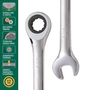 Chave Combinada Com Catraca 1/2 Sata St43104st Chave Combinada com Catraca 1/2 Sata ST43104ST - Chave Combinada com Catraca 1/2 Sata ST43104ST Características Gerais do Produto: - Modelo: ST43104ST - Marca: Sata - Especificações: Catraca de 72 posições proporcionando um arco de giro de apenas 5.; Grandes marcações de tamanho estampado fornecem identificação rápida.; Possuí a mesma numeração dos dois lados da chave.; Acabamento 100% Cromado e polido muito mais segura, pois a camada de cromo não descasca e prática por ser mais fácil de limpar.; - Capacidade: 1/2 - Características: Do lado da estrela possui uma catraca que permite a execução de trabalhos com menor esforço do que os modelos de chaves simples, pois dispensa a retirada da chave para novo movimento de apertar e soltar.;Exclusiva tecnologia Surface Drive: trabalha na superfície plana de parafusos sextavados e estriados, garante maior distribuição de força no corpo da ferramenta e no parafuso. - Ideal Para: Mecânicos em geral - Garantia direto com o Fabricante: Vitalícia direto com o fabricante Garantia: - Vitalícia direto com o fabricante