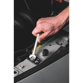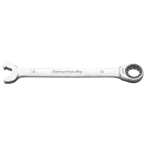 Agilidade é com a chave combinada Superdrive da Tramontina PRO. Seu design exclusivo permite apertar parafusos e porcas sem precisar tirar a chave do parafuso ou porca a cada movimento. O mesmo acontece se inverter a chave para afrouxar. O lado estrela possui mecanismo com catraca, que permite realizar trabalhos com mais agilidade do que uma chave estrela comum. Além disso, sua construção robusta permite realizar apertos finais. Quem é PRO usa.