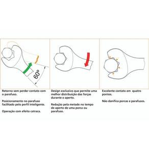 Agilidade é com a chave combinada Superdrive da Tramontina PRO. Seu design exclusivo permite apertar parafusos e porcas sem precisar tirar a chave do parafuso ou porca a cada movimento. O mesmo acontece se inverter a chave para afrouxar. O lado estrela possui mecanismo com catraca, que permite realizar trabalhos com mais agilidade do que uma chave estrela comum. Além disso, sua construção robusta permite realizar apertos finais. Quem é PRO usa. Orientações Cabeça usinada. Acabamento cromado. Catraca fosfatizada. Abertura da boca calibrada. 60 dentes. As chaves de aperto são produzidas em aço ligado com cromo vanádio (Cr-V), e após submetidas a testes rigorosos de torque para atender a norma DIN 1711-1.O teste de dureza é realizado em vários pontos para assegurar a resistência ao desgaste da chave durante o uso ininterrupto. Afrouxar e apertar parafusos e porcas sextavadas e quadradas. Sua forma construtiva permite apertar parafusos e porcas sem precisar tirar a chave para encaixá-la a cada movimento, o mesmo acontece se inverter a chave para afrouxar. Lado estrela possui mecanismo com catraca que permite realizar trabalhos com mais agilidade e facilidade do que uma chave estrela comum. Catraca com construção robusta que permite dar apertos finais conforme DIN-ISO 1711-1.As ferramentas são produzidas e testadas conforme normas específicas. Observações Use óculos, luvas e outros equipamentos de proteção individual (EPIs) de acordo com a tarefa a ser executada. Não golpeie as chaves, a não ser que sejam projetadas para este fim. Sempre utilize uma chave de bitola correta para cada parafuso ou porca para que não haja folga, pois isso danifica a chave e o parafuso. Mantenha a chave limpa para um melhor agarre, pois usá-la suja com graxa ou óleo pode causar acidentes. Não use tubos ou extensões para obter mais torque. Não altere a forma original das chaves. Respeite o torque estabelecido por norma para cada tamanho de chaves. Use a chave perpendicular ao eixo do parafuso e/ou porca. Isto aumenta a vida útil da ferramenta e torna a operação mais segura. Armazene em local limpo e seco. Características Gerais EAN13 7891114125979 DUN14 17891114125976 NCM 8204.11.00 Peso Líquido 0,2380 kg. Peso Bruto 0,2380 kg. Metragem 0,000225 m³. Dimensões Embalagem (Compr. X Larg. X Alt.) 300x 50x 15 mm. Dimensões Produto (Compr. X Larg. X Alt.) 247x 39x 11 mm. Dimensão Extra A 8,2 mm. Dimensão Extra B 11,2 mm. Dimensão Extra C 33,7 mm. Dimensão Extra D 247,0 mm. Dimensão Extra E 39,3 mm.