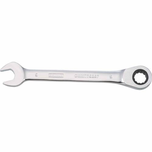 - Chave de combinação de catraca 9 mm. O padrão de marca de hash estampado na alça da chave oferece um ponto de aderência adicional