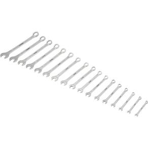 Marca: VonderConteúdo da embalagem:1 Jogo de chaves combinadass, composto por um suporte plástico com 17 peças, sendo: 6 mm, 7 mm, 8 mm, 9 mm, 10 mm, 11 mm, 12 mm, 13 mm, 14 mm, 15 mm, 16 mm, 17 mm, 18 mm, 19 mm, 20 mm, 21 mm e 22 mm.Destaques e diferenciais:Possui acabamento cromado fosco, proporcionando maior resistência contra oxidação/corrosão. Combina na mesma chave um lado fixa e outro estrela, possibilitando aplicações em locais de difícil acesso.Aplicações e dicas de uso:Indicado para apertar e soltar porcas e parafusos sextavados. Nunca utilizar prolongadores sobre as chaves, pois isso aumentará o torque aplicado e diminuirá a vida útil das ferramentas. Uso industrial.Detalhes TécnicosMaterial : Aço cromo vanádio Acabamento: Cromado fosco Quantidade de peças: 17 peças Capacidade: 6 mm a 22 mm Norma DIN: DIN 3113 Massa aproximada peso kg : 1.62 - E CDC : legal: 90 dias Marca: Não Informado