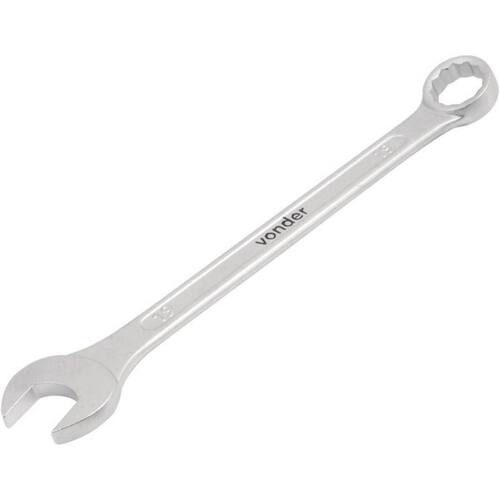 Chave Combinada Vonder 19mm Aço Cromo Vanádio - A chave Combinada Vonder 19mm Aço Cromo Vanádio é indicada para apertar e soltar porcas e parafusos sextavados. Nunca utilizar prolongadores sobre a chave, pois isso aumentará o torque aplicado e diminuirá a vida útil da ferramenta. Produzida em aço cromo vanádio, proporcionando melhor qualidade e durabilidade. Possui acabamento cromado fosco que confere maior resistência à oxidação/corrosão. Chave combinada, sendo um lado fixa e o outro estrela, possibilitando aplicações em locais de difícil acesso. Características Gerais do Produto: Marca: Mister Referência: 37.42.190.000 Dimensão: Medida Chave: 19 mm; Comprimento: 218 mm Acabamento: Cromo Fosco Material: Aço Cromo Vanádio Acompanha o produto: 01 Chave Combinada Vonder 19mm Aço Cromo Vanádio : 3 Meses Ean: 7893946527372