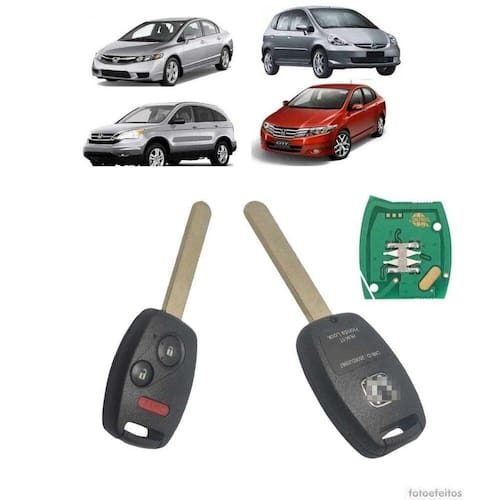 Chave Completa Ignição Contato Hon Civic Fit City Crv 3 Botões Com Panico Frequencia 313.8 Mhz Id46 FCC ID:BHLIK-1T Chave Completa Ignição Hon 2 Botões Com Panico