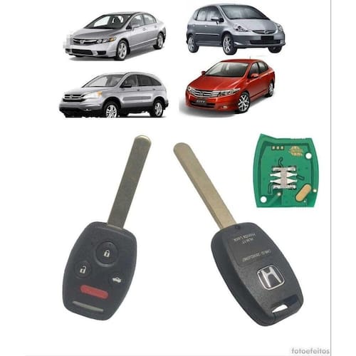 Chave completa ignição contato hon civic fit city crv 4 botões com panico frequencia 313.8 mhz id46 fcc id:mlbhlik- 1t Chave completa ignição hon 4 botões com panico