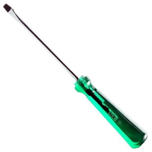 A Chave de Fenda é uma ferramenta popular e bastante conhecida. Utilizada para apertar e desapertar parafusos que possuem uma fenda na cabeça, a ferramenta é útil para trabalhos em oficinas, mecânicas, indústrias, e serviços domésticos. A Chave de Fenda da Eda possui o cabo verde transparente, é fabricada com materiais de alta qualidade e conta com a ponta imantada, facilitando a remoção do parafuso.