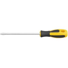 Conteúdo da Embalagem: - Produzida em aço cromo vanádio, proporcionando maior resistência e durabilidade. Possui acabamento niquelado que oferece maior resistência contra oxidação/corrosão. Conta com ponta magnetizada que facilita tanto a colocação quanto a retirada de parafusos em locais de difícil acesso. Cabo anatômico em polipropileno revestido com borracha termoplástica que garante maior conforto ao operador. - Indicada para fixar e soltar parafusos com fenda simples.