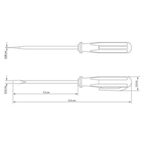Modo de uso: ;Use óculos, luvas e outros equipamentos de proteção de acordo com a tarefa a ser executada. Utilize chaves de fenda isoladas, identificadas pela marcação V, quando for necessário trabalhar em locais com corrente elétrica. Importante: nestes casos, inspecione a integridade da isolação elétrica, e, se aparecerem trincas na isolação, suspenda o uso imediatamente. Utilize chaves com ponta adequada para cada tipo de fenda, para realizar a tarefa de forma mais rápida e segura. Respeite o torque estabelecido por norma para cada bitola. Não utilize as chaves de fenda como formão ou alavanca. Não altere as dimensões da ponta para obter outro perfil. Armazene em limpo e seco.