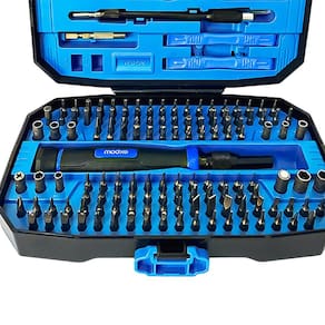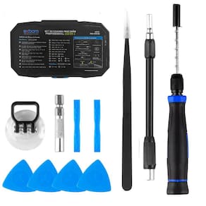 1x Chave 1x Eixo de extensão flexível 2x Ferramentas de alavanca dupla 1x Ventosa 1x Pinça 4x Palhetas de abertura 1x Magnetizador/desmagnetizador 1x Adaptador para 4mm 1x Caixa de Ferramentas 128x Bits de Chave