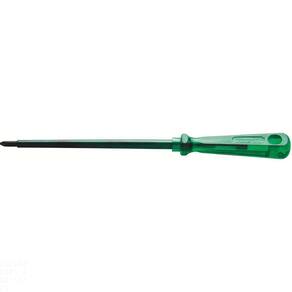 Seja em manutenções industriais ou automotivas, apertar ou afrouxar parafusos se torna mais fácil com a ajuda das Chaves Easygrip da Tramontina PRO. Seu cabo com formato sextavado proporciona maior conforto e agilidade na utilização. Estão disponíveis com ponta chata, cruzada, trafix, trafix PZ e canhão nos modelos tradicional, toco e com isolação. Escolha o tamanho ideal para o seu trabalho e mãos à obra. Orientações Haste em aço cromo vanádio temperada. Ponta fosfatizada.Cabo em PVC verde transparente.Isolação de 1000 V c. a.Produto em conformidade com a NBR9699 e NR10.DIN ISO 8764. As hastes das chaves de fenda são testadas em máquina de ensaio específica, para verificar o perfeito balanço entre resistência mecânica e dureza.Os dimensionais das pontas são verificados com gabaritos-padrão calibrados e certificados, e a qualidade do fosfato é inspecionada ao microscópio.As chaves de fenda isoladas são amplamente testadas, o que promove segurança na sua utilização em locais com tensões de até 1000 V c. a.Indicada para trabalhos em redes de tensão até 1.000 volts c. a.As ferramentas são produzidas e testadas conforme normas específicas. Características Gerais EAN13 7891114105100 DUN14 17891114105107 NCM 8205.40.00 Peso Líquido 0,0800 kg. Peso Bruto 0,0840 kg. Metragem 0,000175 m³. Dimensões Embalagem (Compr. X Larg. X Alt.) 305x 25x 23 mm. Dimensões Produto (Compr. X Larg. X Alt.) 299x 22x 22 mm. Cor 1 3C775F Hexa Dimensão Extra A 5,0 mm. Dimensão Extra B 299,0 mm. Dimensão Extra C 22,5 mm. Dimensão Extra D 200,0 mm. Dimensão Extra E 1,3 mm. Observações Sempre utilizar óculos de segurança para proteger os olhos.Utilizar luvas para proteger as mãos.Sempre utilizar chaves de fenda isoladas, identificadas pela marcação 1000 V, quando é necessário trabalhar em um local que tenha corrente elétrica.Utilizar chaves com ponta adequada para cada tipo de fenda, para conseguir realizar a tarefa mais rápido e de forma segura.Respeitar o torque estabelecido por norma para cada bitola.Não usar as chaves de fenda como formão ou alavanca.Não alterar as dimensões originais da ponta para obter outro perfil.
