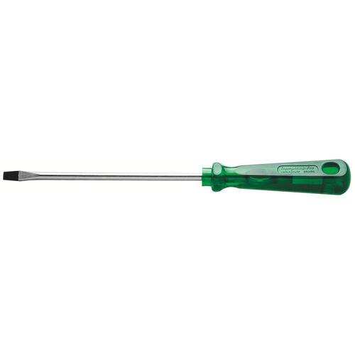 Seja em manutenções industriais ou automotivas, apertar ou afrouxar parafusos se torna mais fácil com a ajuda das Chaves Easygrip da Tramontina PRO. Seu cabo com formato sextavado proporciona maior conforto e agilidade na utilização. Estão disponíveis com ponta chata, cruzada, trafix, trafix PZ e canhão nos modelos tradicional, toco e com isolação. Escolha o tamanho ideal para o seu trabalho e mãos à obra. Orientações Haste em aço cromo vanádio temperada. Acabamento cromado.Ponta fosfatizada e magnetizada.Cabo em PVC verde transparente.DIN ISO 2380.Ponta chata.As hastes das chaves de fenda são testadas em máquina de ensaio específica, para verificar o perfeito balanço entre resistência mecânica e dureza.Os dimensionais das pontas são verificados com gabaritos-padrão calibrados e certificados, e a qualidade do fosfato é inspecionada ao microscópio.Apertar ou afrouxar parafusos de fenda simples.As ferramentas são produzidas e testadas conforme normas específicas. Características Gerais EAN13 7891114039924 DUN14 17891114039921 NCM 8205.40.00 Peso Líquido 0,0300 kg. Peso Bruto 0,0340 kg. Metragem 0,000069 m³. Dimensões Embalagem (Compr. X Larg. X Alt.) 150x 23x 20 mm. Dimensões Produto (Compr. X Larg. X Alt.) 139x 17x 17 mm. Cor 1 3C775F Hexa Dimensão Extra A 3,0 mm. Dimensão Extra B 139,0 mm. Dimensão Extra C 17,0 mm. Dimensão Extra D 50,0 mm. Dimensão Extra E 0,5 mm. Observações Use óculos, luvas e outros equipamentos de proteção individual (EPIs) de acordo com a tarefa a ser executada. Utilize chaves de fenda isoladas, identificadas pela marcação 1.000 V, quando for necessário trabalhar em locais com corrente elétrica. Importante: nestes casos, inspecione a integridade da isolação elétrica, e, se aparecerem trincas na isolação, suspenda o uso imediatamente. Utilize chaves com ponta adequada para cada tipo de fenda, para realizar a tarefa de forma mais rápida e segura. Respeite o torque estabelecido por norma para cada bitola. Não utilize as chaves de fenda como formão ou alavanca. Não altere as dimensões originais da ponta para obter outro perfil. Armazene em local limpo e seco.