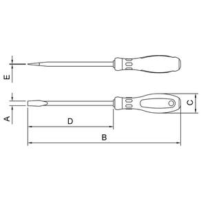Seja em manutenções industriais ou automotivas, apertar ou afrouxar parafusos se torna mais fácil com a ajuda das Chave Ultragrip Plus da Tramontina PRO. Seu cabo emborrachado proporciona maior conforto e firmeza na utilização. Estão disponíveis com ponta chata e cruzada, nos modelos tradicional e toco. Quem é PRO usa. Orientações Haste em aço cromo vanádio temperada. Acabamento cromado.Ponta fosfatizada e magnetizada.Cabo com dupla injeção em PP e borracha.DIN ISO 2380.Ponta chata.As hastes das chaves de fenda são testadas em máquina de ensaio específica, para verificar o perfeito balanço entre resistência mecânica e dureza.Os dimensionais das pontas são verificados com gabaritos-padrão calibrados e certificados, e a qualidade do fosfato é inspecionada ao microscópio.Apertar ou afrouxar parafusos de fenda simples.As ferramentas são produzidas e testadas conforme normas específicas. Características Gerais EAN13 7891114151848 DUN14 17891114151845 NCM 8205.40.00 Peso Líquido 0,0600 kg. Peso Bruto 0,0640 kg. Metragem 0,000403 m³. Dimensões Embalagem (Compr. X Larg. X Alt.) 230x 50x 35 mm. Dimensões Produto (Compr. X Larg. X Alt.) 184x 30x 30 mm. Dimensão Extra A 5,0 mm. Dimensão Extra B 184,0 mm. Dimensão Extra C 30,6 mm. Dimensão Extra D 75,0 mm. Dimensão Extra E 1,0 mm. Observações Use óculos, luvas e outros equipamentos de proteção individual (EPIs) de acordo com a tarefa a ser executada. Utilize chaves de fenda isoladas, identificadas pela marcação 1.000 V, quando for necessário trabalhar em locais com corrente elétrica. Importante: nestes casos, inspecione a integridade da isolação elétrica, e, se aparecerem trincas na isolação, suspenda o uso imediatamente. Utilize chaves com ponta adequada para cada tipo de fenda, para realizar a tarefa de forma mais rápida e segura. Respeite o torque estabelecido por norma para cada bitola. Não utilize as chaves de fenda como formão ou alavanca. Não altere as dimensões originais da ponta para obter outro perfil. Armazene em local limpo e seco.