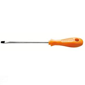 Seja em manutenções industriais ou automotivas, apertar ou afrouxar parafusos se torna mais fácil com a ajuda da Chave Twister da Tramontina PRO. Esta chave de fenda proporciona maior conforto e firmeza na utilização, devido as suas saliências no cabo. Ideal para trabalhos em locais de difícil acesso, aschaves estão disponíveis em ponta chata e cruzada, nos modelos tradicional e toco. É mais uma inovação que compõe a linha de ferramentas industriais da Tramontina PRO. Agilidade e eficiência: características de quem é PRO. Orientações Haste em aço cromo vanádio temperada.Acabamento cromado.Ponta fosfatizada e magnetizada.Cabo injetado.DIN ISO 2380.Ponta chata.As hastes das chaves de fenda são testadas em máquina de ensaio específica, para verificar o perfeito balanço entre resistência mecânica e dureza.Os dimensionais das pontas são verificados com gabaritos-padrão calibrados e certificados, e a qualidade do fosfato é inspecionada ao microscópio.Apertar ou afrouxar parafusos de fenda simples.As ferramentas são produzidas e testadas conforme normas específicas. Características Gerais EAN13 7891114069686 DUN14 17891114069683 NCM 8205.40.00 Peso Líquido 0,0720 kg. Peso Bruto 0,0750 kg. Metragem 0,000189 m³. Dimensões Embalagem (Compr. X Larg. X Alt.) 210x 30x 30 mm. Dimensões Produto (Compr. X Larg. X Alt.) 209x 30x 30 mm. Cor 1 EF8134 Hexa Dimensão Extra A 6,0 mm. Dimensão Extra B 209,0 mm. Dimensão Extra C 30,0 mm. Dimensão Extra D 100,0 mm. Dimensão Extra E 1,2 mm. Observações Use óculos, luvas e outros equipamentos de proteção individual (EPIs) de acordo com a tarefa a ser executada. Utilize chaves de fenda isoladas, identificadas pela marcação 1.000 V, quando for necessário trabalhar em locais com corrente elétrica. Importante: nestes casos, inspecione a integridade da isolação elétrica, e, se aparecerem trincas na isolação, suspenda o uso imediatamente. Utilize chaves com ponta adequada para cada tipo de fenda, para realizar a tarefa de forma mais rápida e segura. Respeite o torque estabelecido por norma para cada bitola. Não utilize as chaves de fenda como formão ou alavanca. Não altere as dimensões originais da ponta para obter outro perfil. Armazene em local limpo e seco.