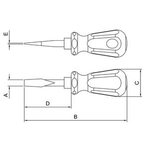 Seja em manutenções industriais ou automotivas, apertar ou afrouxar parafusos se torna mais fácil com a ajuda das Chaves Quadrum da Tramontina PRO. Seu cabo com formato quadrado proporciona maior conforto e firmeza na utilização. Estão disponíveis com ponta chata e cruzada, nos modelos tradicional e toco. Escolha o tamanho ideal para o seu trabalho e mãos à obra. Orientações Haste em aço cromo vanádio temperada. Haste curta.Acabamento cromado.Ponta fosfatizada e magnetizada.Cabo em PVC verde transparente.DIN ISO 2380.Ponta chata.As hastes das chaves de fenda são testadas em máquina de ensaio específica, para verificar o perfeito balanço entre resistência mecânica e dureza.Os dimensionais das pontas são verificados com gabaritos-padrão calibrados e certificados, e a qualidade do fosfato é inspecionada ao microscópio.Apertar ou afrouxar parafusos de fenda simples.As ferramentas são produzidas e testadas conforme normas específicas. Características Gerais EAN13 7891114040104 DUN14 17891114040101 NCM 8205.40.00 Peso Líquido 0,0450 kg. Peso Bruto 0,0490 kg. Metragem 0,000079 m³. Dimensões Embalagem (Compr. X Larg. X Alt.) 105x 30x 25 mm. Dimensões Produto (Compr. X Larg. X Alt.) 106x 27x 27 mm. Cor 1 3C775F Hexa Dimensão Extra A 8,0 mm. Dimensão Extra B 106,0 mm. Dimensão Extra C 27,5 mm. Dimensão Extra D 38,0 mm. Dimensão Extra E 1,2 mm. Observações Use óculos, luvas e outros equipamentos de proteção individual (EPIs) de acordo com a tarefa a ser executada. Utilize chaves de fenda isoladas, identificadas pela marcação 1.000 V, quando for necessário trabalhar em locais com corrente elétrica. Importante: nestes casos, inspecione a integridade da isolação elétrica, e, se aparecerem trincas na isolação, suspenda o uso imediatamente. Utilize chaves com ponta adequada para cada tipo de fenda, para realizar a tarefa de forma mais rápida e segura. Respeite o torque estabelecido por norma para cada bitola. Não utilize as chaves de fenda como formão ou alavanca. Não altere as dimensões originais da ponta para obter outro perfil. Armazene em local limpo e seco.