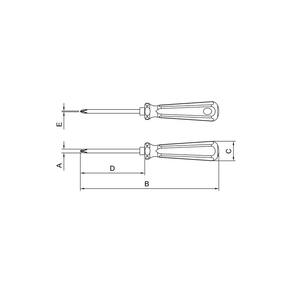 Haste em aço cromo vanádio temperada. Acabamento cromado. Ponta fosfatizada e magnetizada. Cabo em PVC verde transparente. DIN ISO 8764. Ponta cruzada. As hastes das chaves de fenda são testadas em máquina de ensaio específica, para verificar o perfeito balanço entre resistência mecânica e dureza. Os dimensionais das pontas são verificados com gabaritos-padrão calibrados e certificados, e a qualidade do fosfato é inspecionada ao microscópio. Apertar ou afrouxar parafusos de fenda cruzada. As ferramentas são produzidas e testadas conforme normas específicas.