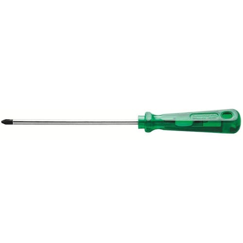 Seja em manutenções industriais ou automotivas, apertar ou afrouxar parafusos se torna mais fácil com a ajuda das Chaves Easygrip da Tramontina PRO. Seu cabo com formato sextavado proporciona maior conforto e agilidade na utilização. Estão disponíveis com ponta chata, cruzada, trafix, trafix PZ e canhão nos modelos tradicional, toco e com isolação. Escolha o tamanho ideal para o seu trabalho e mãos à obra. Orientações Haste em aço cromo vanádio temperada.Acabamento cromado.Ponta fosfatizada e magnetizada.Cabo em PVC verde transparente.DIN ISO 8764. Ponta cruzada.As hastes das chaves de fenda são testadas em máquina de ensaio específica, para verificar o perfeito balanço entre resistência mecânica e dureza.Os dimensionais das pontas são verificados com gabaritos-padrão calibrados e certificados, e a qualidade do fosfato é inspecionada ao microscópio.Apertar ou afrouxar parafusos de fenda cruzada.As ferramentas são produzidas e testadas conforme normas específicas. Características Gerais EAN13 7891114023251 DUN14 17891114023258 NCM 8205.40.00 Peso Líquido 0,0960 kg. Peso Bruto 0,1000 kg. Metragem 0,000199 m³. Dimensões Embalagem (Compr. X Larg. X Alt.) 265x 30x 25 mm. Dimensões Produto (Compr. X Larg. X Alt.) 259x 29x 29 mm. Cor 1 3C775F Hexa Dimensão Extra A 6,0 mm. Dimensão Extra B 259,0 mm. Dimensão Extra C 28,7 mm. Dimensão Extra D 150,0 mm. Dimensão Extra E 2,3 mm. Observações Use óculos, luvas e outros equipamentos de proteção individual (EPIs) de acordo com a tarefa a ser executada. Utilize chaves de fenda isoladas, identificadas pela marcação 1.000 V, quando for necessário trabalhar em locais com corrente elétrica. Importante: nestes casos, inspecione a integridade da isolação elétrica, e, se aparecerem trincas na isolação, suspenda o uso imediatamente. Utilize chaves com ponta adequada para cada tipo de fenda, para realizar a tarefa de forma mais rápida e segura. Respeite o torque estabelecido por norma para cada bitola. Não utilize as chaves de fenda como formão ou alavanca. Não altere as dimensões originais da ponta para obter outro perfil. Armazene em local limpo e seco.