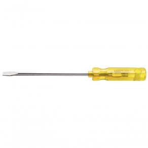Modo de uso: ;Use óculos, luvas e outros equipamentos de proteção de acordo com a tarefa a ser executada. Utilize chaves de fenda isoladas, identificadas pela marcação V, quando for necessário trabalhar em locais com corrente elétrica. Importante: nestes casos, inspecione a integridade da isolação elétrica, e, se aparecerem trincas na isolação, suspenda o uso imediatamente. Utilize chaves com ponta adequada para cada tipo de fenda, para realizar a tarefa de forma mais rápida e segura. Respeite o torque estabelecido por norma para cada bitola. Não utilize as chaves de fenda como formão ou alavanca. Não altere as dimensões da ponta para obter outro perfil. Armazene em limpo e seco.