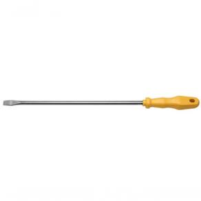 Modo de uso: ;Use óculos, luvas e outros equipamentos de proteção de acordo com a tarefa a ser executada. Utilize chaves de fenda isoladas, identificadas pela marcação V, quando for necessário trabalhar em locais com corrente elétrica. Importante: nestes casos, inspecione a integridade da isolação elétrica, e, se aparecerem trincas na isolação, suspenda o uso imediatamente. Utilize chaves com ponta adequada para cada tipo de fenda, para realizar a tarefa de forma mais rápida e segura. Respeite o torque estabelecido por norma para cada bitola. Não utilize as chaves de fenda como formão ou alavanca. Não altere as dimensões da ponta para obter outro perfil. Armazene em limpo e seco.