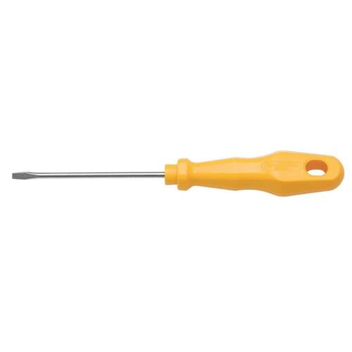 - Marca: Tramontina; - Haste em aço especial temperado; - Acabamento niquelado; - Ponta chata; - As hastes as chaves de fenda são testadas em máquinas de ensaio específicas, para verificar o perfeito balanço entre resistência mecânica e dureza; - Cabos injetados com material de alta resistência; - Os dimensionais das pontas são verificados com gabaritos-padrão, calibrados e certificados; - As ferramentas são produzidas e testadas conforme normas específicas; - Peso: 20 gr; - Garantia: Garantia total contra vícios ou defeitos de fabricação.