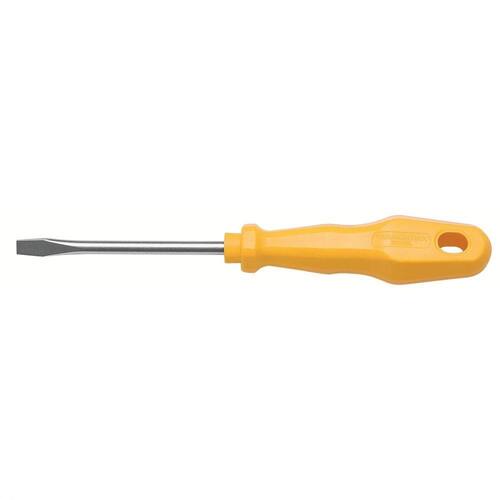 A chave de fenda de ponta chata é uma ferramenta básica em qualquer caixa de ferramentas. E para o seu kit não ficar incompleto você conta com a Chave de Fenda Tramontina Yellow com Ponta Chata 3/16x3 Polegadas. Com ela, apertar e soltar parafusos independente da posição, fica mais fácil devido a qualidade de sua haste em aço especial temperado com acabamento niquelado. Graças ao cabo em polipropileno injetado, possui um manuseio firme, o que torna suas tarefas muito mais práticas de serem executadas. Garanta a sua e não passe mais trabalho! Orientações Haste em aço especial temperado. Acabamento niquelado. Ponta chata. As hastes as chaves de fenda são testadas em máquinas de ensaio específicas, para verificar o perfeito balanço entre resistência mecânica e dureza. Cabos injetados com material de alta resistência. Os dimensionais das pontas são verificados com gabaritos-padrão, calibrados e certificados. As ferramentas são produzidas e testadas conforme normas específicas. Características Gerais EAN13 7891114010886 DUN14 17891114010883 NCM 8205.40.00 Peso Líquido 0,0400 kg. Peso Bruto 0,0400 kg. Metragem 0,000128 m³. Dimensões Embalagem (Compr. X Larg. X Alt.) 170x 30x 25 mm. Dimensões Produto (Compr. X Larg. X Alt.) 170x 26x 26 mm. Cor 1 FFD200 Hexa Dimensão Extra A 5,5 mm. Dimensão Extra B 170,0 mm. Dimensão Extra C 25,7 mm. Dimensão Extra D 75,0 mm. Dimensão Extra E 1,3 mm. Observações Use óculos, luvas e outros equipamentos de proteção de acordo com a tarefa a ser executada. Utilize chaves de fenda isoladas, identificadas pela marcação 1.000 V, quando for necessário trabalhar em locais com corrente elétrica. Importante: nestes casos, inspecione a integridade da isolação elétrica, e, se aparecerem trincas na isolação, suspenda o uso imediatamente. Utilize chaves com ponta adequada para cada tipo de fenda, para realizar a tarefa de forma mais rápida e segura. Respeite o torque estabelecido por norma para cada bitola. Não utilize as chaves de fenda como formão ou alavanca. Não altere as dimensões originais da ponta para obter outro perfil. Armazene em local limpo e seco.