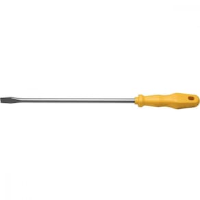 Haste em aço especial temperado. Acabamento niquelado. Ponta chata. As hastes as chaves de fenda são testadas em máquinas de ensaio específicas, para verificar o perfeito balanço entre resistência mecânica e dureza. Cabos injetados com material de alta resistência. Os dimensionais das pontas são verificados com gabaritos-padrão, calibrados e certificados. As ferramentas são produzidas e testadas conforme normas específicas. Com a Chave de Fenda Tramontina Yellow com Ponta Chata 3/8x10 Polegadas apertar ou afrouxar parafusos ficou muito mais prático! Desenvolvida para remover ou fixar parafusos, a ferramenta é produzida em aço especial temperado com acabamento niquelado, o que garante alta resistência e durabilidade. Seu cabo é em polipropileno injetado, que proporciona um manuseio firme e confortável. Uma ferramenta indispensável para você!