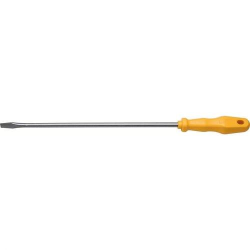 Para quem preza por ter uma boa chave de fenda, precisa conhecer a Chave de Fenda Tramontina Yellow com Ponta Chata 5/16x12 Polegadas. Uma ferramenta forjada em aço especial temperado, lhe garantindo muito mais durabilidade e resistência. O cabo produzido em polipropileno injetado, proporciona muito mais conforto no manuseio. Indispensável para apertar e afrouxar parafusos, vai levar ainda muito mais praticidade na execução das suas tarefas. Segurança e eficácia em uma única ferramenta! Orientações Haste em aço especial temperado. Acabamento niquelado. Ponta chata. As hastes as chaves de fenda são testadas em máquinas de ensaio específicas, para verificar o perfeito balanço entre resistência mecânica e dureza. Cabos injetados com material de alta resistência. Os dimensionais das pontas são verificados com gabaritos-padrão, calibrados e certificados. As ferramentas são produzidas e testadas conforme normas específicas. Características Gerais EAN13 7891114013948 DUN14 17891114013945 NCM 8205.40.00 Peso Líquido 0,1700 kg. Peso Bruto 0,1700 kg. Metragem 0,000436 m³. Dimensões Embalagem (Compr. X Larg. X Alt.) 415x 35x 30 mm. Dimensões Produto (Compr. X Larg. X Alt.) 415x 30x 30 mm. Cor 1 FFD200 Hexa Dimensão Extra A 8,2 mm. Dimensão Extra B 415,0 mm. Dimensão Extra C 30,5 mm. Dimensão Extra D 300,0 mm. Dimensão Extra E 1,4 mm. Observações Use óculos, luvas e outros equipamentos de proteção de acordo com a tarefa a ser executada. Utilize chaves de fenda isoladas, identificadas pela marcação 1.000 V, quando for necessário trabalhar em locais com corrente elétrica. Importante: nestes casos, inspecione a integridade da isolação elétrica, e, se aparecerem trincas na isolação, suspenda o uso imediatamente. Utilize chaves com ponta adequada para cada tipo de fenda, para realizar a tarefa de forma mais rápida e segura. Respeite o torque estabelecido por norma para cada bitola. Não utilize as chaves de fenda como formão ou alavanca. Não altere as dimensões originais da ponta para obter outro perfil. Armazene em local limpo e seco.