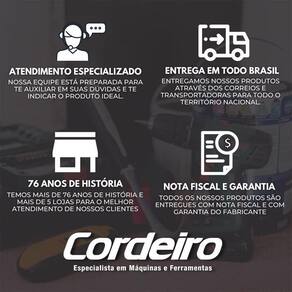Imagens meramente ilustrativas. Loja Oficial Cordeiro Máquinas, a mais de 78 anos de tradição e confiança de nossos clientes