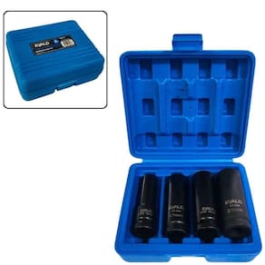 1 Jogo de Soquetes Longos de Impacto 1/2 POL 14 a 21 MM Kit com 4 Peças EVALD