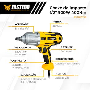 A Chave de Impacto Fasterr FST057 foi projetada para entregar alto torque e praticidade nas tarefas mais exigentes.