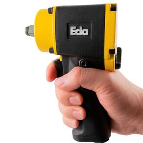 Chave de Impacto Pneumática 1/2 Pol. 520nm Duplo Martelo Compacta Eda Profissional Chave de impacto é indicada para fixar e soltar parafusos e porcas de pneus em borracharias, oficinas e centros automotivos. sistema de impacto Twin Hammer martelo duplo , de alto torque. Em aço maraging de alta dureza. - Marca: Eda Profissional - Código: 0SJ - Chave de Impacto com encaixe de 1/2 Polegada - Design compacto com eficiente torque de 520Nm - Uso industrial e profissional - Fabricado em uma classe especial de aço baixo carbono de ultra alta resistência - O sistema de impacto é Twin Hammer martelo duplo , de alto torque de saída e excelente balanceamento - Velocidade livre: 9.800rpm - Torque máximo: 520 N.M 53 kgf.M - Com controle de torque - Pressão de trabalho 90 PSI - Consumo de ar: 4,2 CFM - Entrada de ar: 1/4 - Ideal para trabalho em borracharias e oficinas - Gatilho para segurança do operador em ação suave que permite um menor controle de velocidade - Peso: 1,8Kg - Dimensões da embalagem: 19 x 16 x 8cm - Garantia: 90 dias Itens inclusos: - 1 Chave de Impacto Pneumática 1/2 Pol. - 1 Engate para mangueira de 1/4 Pol. - 1 Recipiente para óleo lubrificante