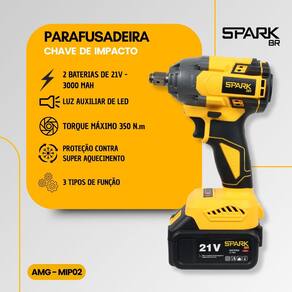 Parafusadeira Chave de Impacto Spark BR 21V – 2 Baterias Recarregáveis com Alto Torque e LED