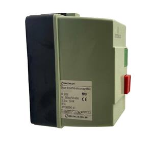 Chave de Partida Eletromagnética 32A Ajuste 23.0-32.0A 380V Decorlux Chave de partida eletromagnética, ou partida direta, são dispositivos compostos de um contator AC3 e um relé térmico sobrecarga . Montados em caixa plástica e metálica com botoeiras de liga e desliga. Utilizados para manobras e proteção de motores monofásico e trifásico de diversos equipamentos e potência. Especificação Técnica: Marca: Decorlux Modelo: CP33232 Tensão: 380Vac Corrente: 32A Corrente de Ajuste: 23.0-32.0A Caixa: plástica Tensão nominal de isolação Ui : 690V Freqência nominal: 50/60Hz Grau de proteção: IP55 Acionamento: 2-botões Temperatura ambiente: -540ºC Altitude de instalação: