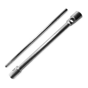 - Fabricada em aço especial resistente. - Forjada com duas bocas usinadas com paredes de alta resistência. - projetada para o aperto e desaperto de parafusos e porcas de fixação de rodas de veículos pesados. - Utilizado em conjunto com alavanca. - Ideal para caminhões e caminhonetes. - Medida: 27 x 32 mm. - Comprimento: 410mm 41cm .
