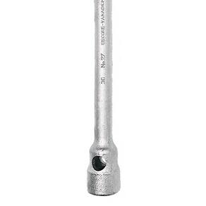 Fabricada em Aço Gedore-Vanadium com acabamento niquelado. É uma Chave longa com perfil de encaixe sextavado interno e seu comprimento possibilita o acesso aos parafusos da roda interna de caminhões e ônibus. É Indicada para utilização com os Manípulos refs. 27 d / 35 d - 19 e 27 d / 35 d - 21, de acordo com o modelo que deverá ser adquirido separadamente.