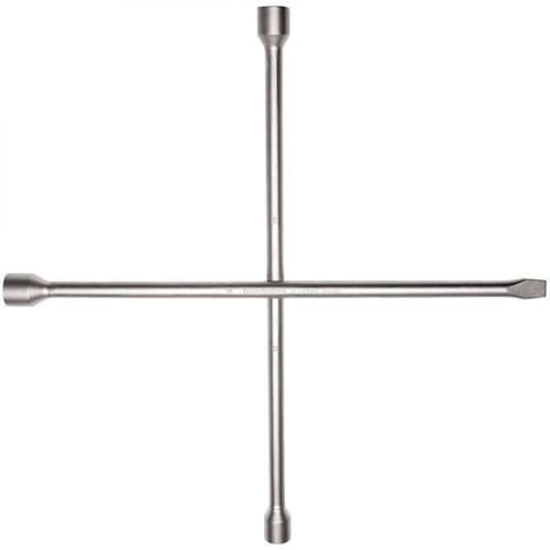 Corpo forjado em aço especial e temperado.Acabamento cromado.Abertura das bocas calibradas.O teste de dureza é realizado em vários pontos para assegurar a resistência ao desgaste da chave durante o uso ininterrupto.As aberturas das bocas das chaves de aperto são verificadas com gabaritos calibrados, o que garante seu perfeito acoplamento nos parafusos.Alguns tipos de chaves de aperto são fornecidos em bitolas métricas e em polegadas, para o uso nos diversos fixadores disponíveis.As ferramentas são produzidas e testadas conforme normas específicas. A Chave de Roda Tipo Cruz Tramontina com Corpo Forjado em Aço Especial Cromado 17x19x21 mm com Espátula é a ferramenta que não pode faltar no porta-malas do seu carro. Essa ferramenta produzida com corpo forjado em aço especial cromado vai lhe auxiliar a trocar pneus com muito mais facilidade, pois suas quatro extremidades acomodam uma grande variedade de tamanhos de porcas com olhal. Ela é altamente durável, resistente e ainda fácil de utilizar, sendo indispensável para você!