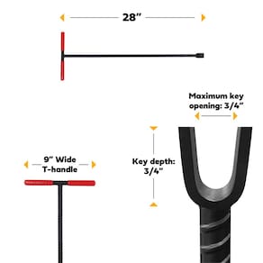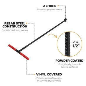 HOMESTEAD Chave de medidor de água de 71 cm com alça larga em T, aderência confortável e cabeça em forma de U - 71 cm. comprimento que permite o acesso para abrir e fechar metros ou válvulas difíceis de alcançar - Cabeça em forma de U com abertura máxima de chave de 1,9 cm que ajuda você a ligar ou desligar a alça com facilidade - 23 cm. A alça larga em T com revestimento de vinil oferece conforto e ganha mais alavancagem - A estrutura de aço de vergalhão combinada com acabamento revestido a pó o torna ideal para usos a longo prazo - Com apenas 1,5 kg. Sua chave de água leve mas durável é fácil de usar tanto em uso comercial quanto doméstico